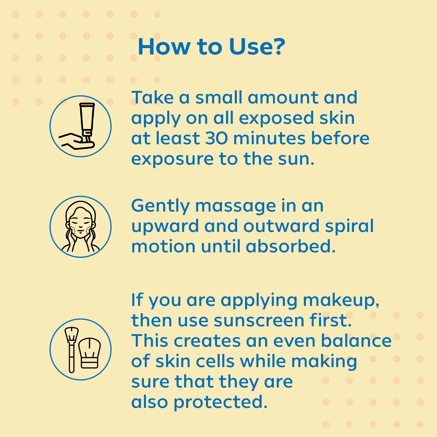 - Apply the sunscreen gently on face, neck and other exposed areas.