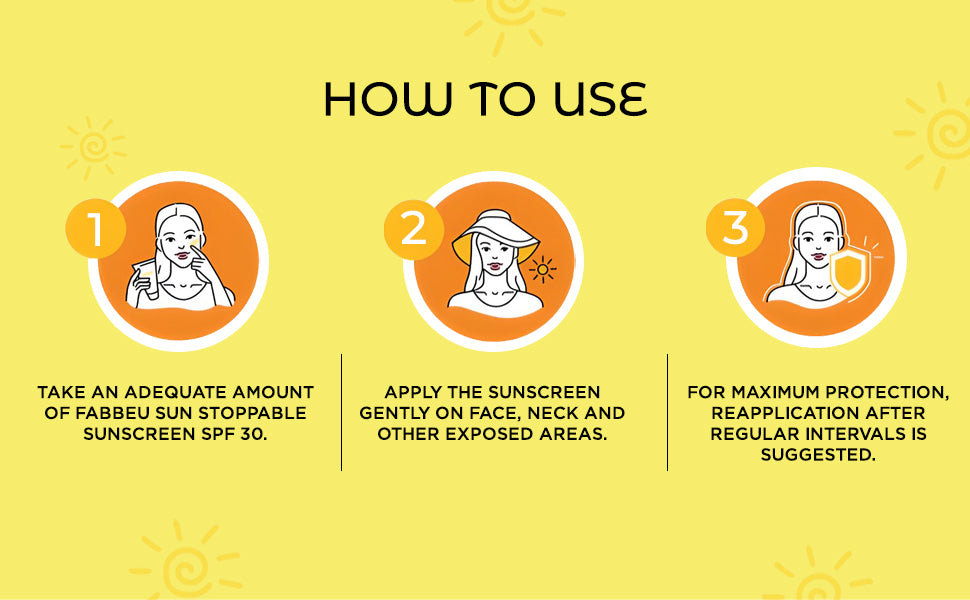 - Take an adequate amount of Fabbeu Sun Stoppable Sunscreen SPF 30.